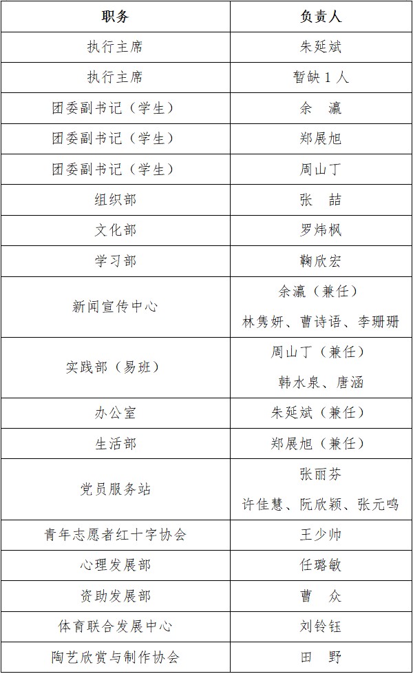 经考核,确定朱延斌等为天游ty8线路检测中心登录团委学生会负责人。现将具体名单公示如下: